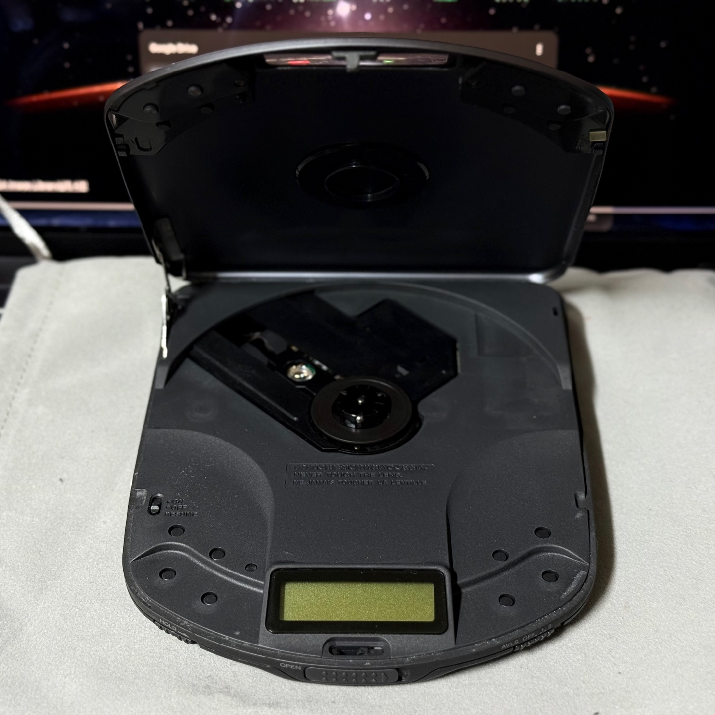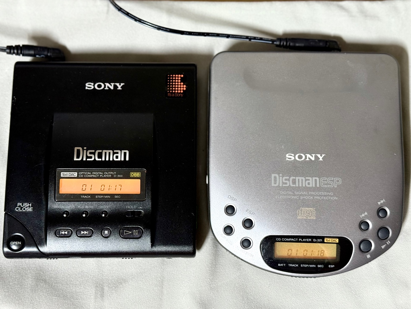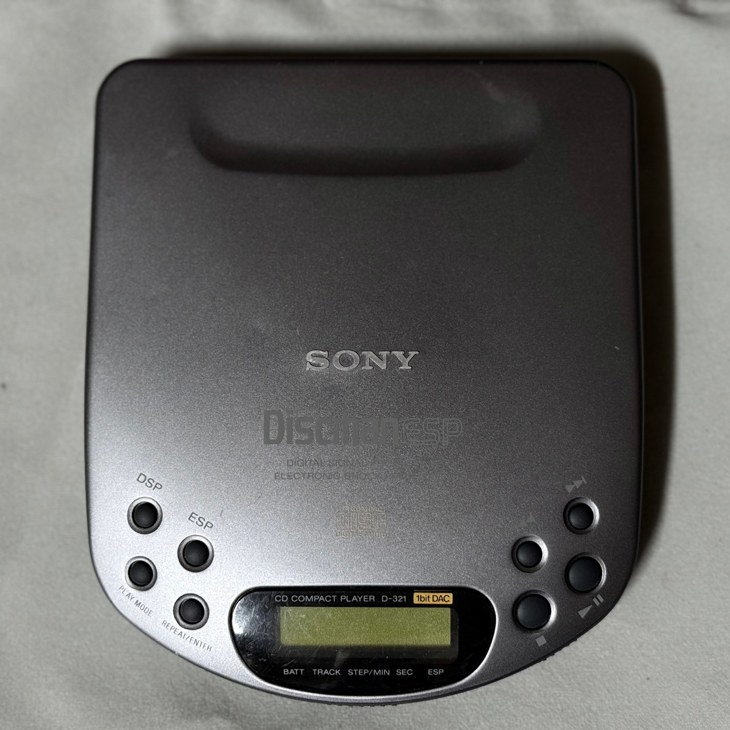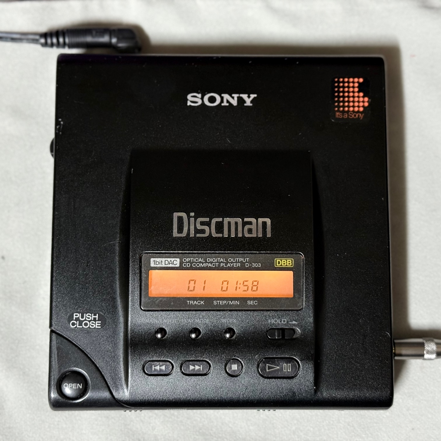 이 모델은 튐 방지 기능(ESP:Electronic Shock Protection)이 있기는 하지만, 이 기능을 활성화하면 AA 건전지 2개로 4시간밖에 버티지 못하기 때문에 4.5V DC 어댑터를 따로 구매했다. 그 시대와 어울리는 음반 중 하나인 패트레이버 보컬 컬렉션을 우선 들어봤다. 기본적으로 화이트 노이즈가 있기는 하지만 출력과 음질은 아주 훌륭했다. 사진에는 잘 안 보이는데, 재생 시 정보창에 은은하게 주황색 불빛이 들어오는데 이게 또 감성을 자극하는 요소가 된다.